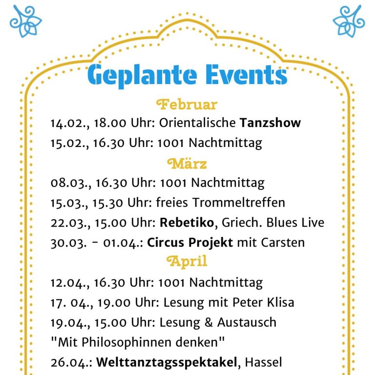 Bei uns im Café und im Auftrag des SisTARA e. V. finden häufig interkulturelle Events am Hassel statt.